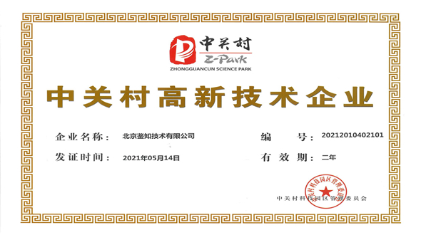 北京鑒知技術有限公司日前通過了中關村科技園區(qū)管理委員會審核,被評為“中關村高新技術企業(yè)”。中關村高新技術企業(yè)資質的獲得,是對鑒知技術在產品研發(fā)實力、技術創(chuàng)新以及市場競爭力的高度認可。