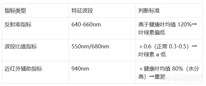 2. 波段比值關聯(lián):通過分析不同波段反射特性的比值,能將葉綠素含量量化。比如以 550nm 左右綠光反射率和 680nm 左右紅光反射率的比值為例,當該比值較低時,常提示葉綠素合成可能受阻,小麥有缺素(如氮素不足等)風險,不過具體閾值需結合實際場景確定。